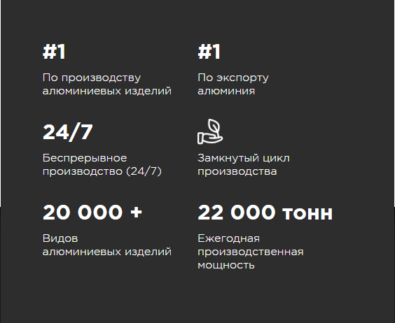 - ежегодно в цехах комбината производится около 22000 т алюминиевых деталей, отвечающих высоким стандартам качества;