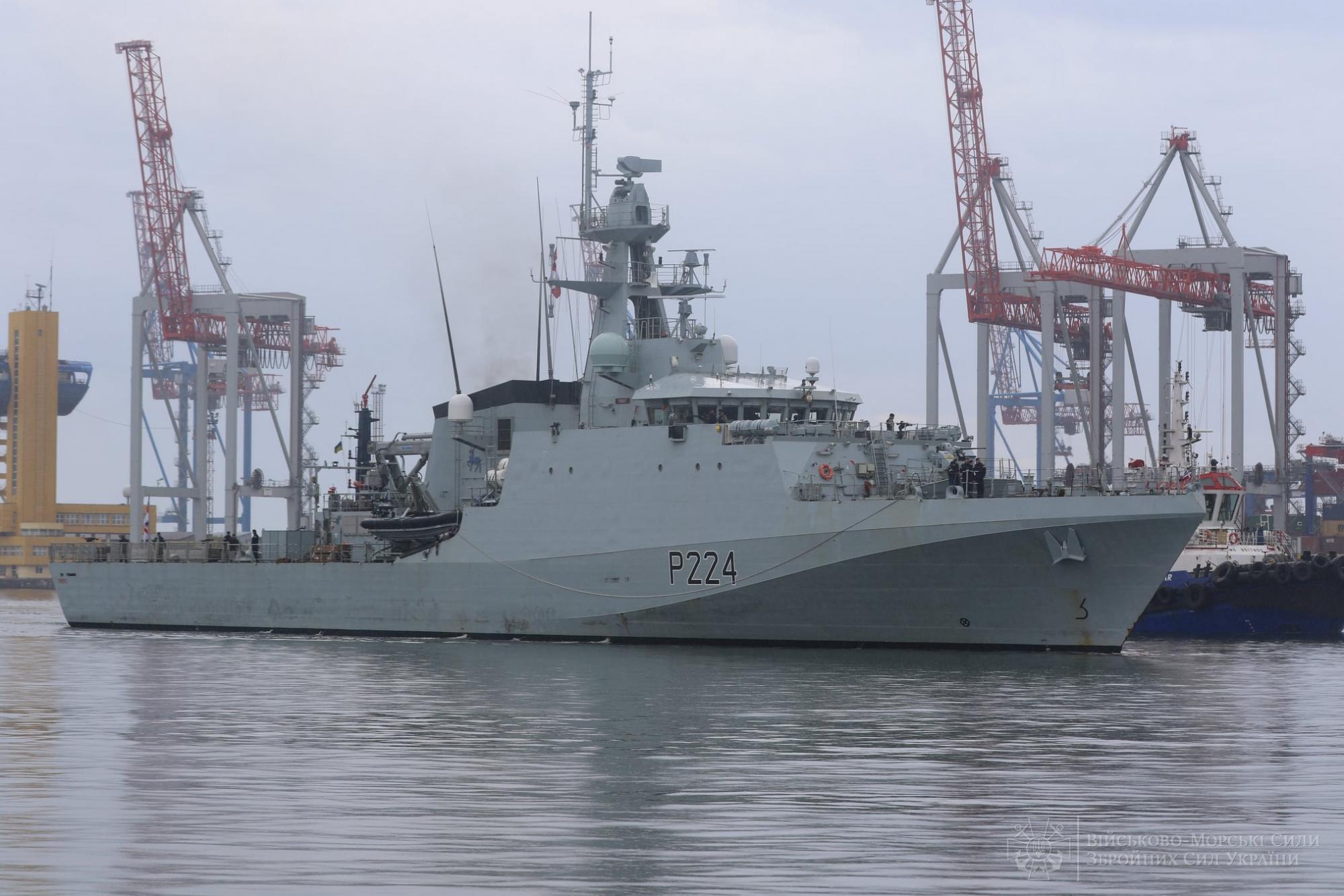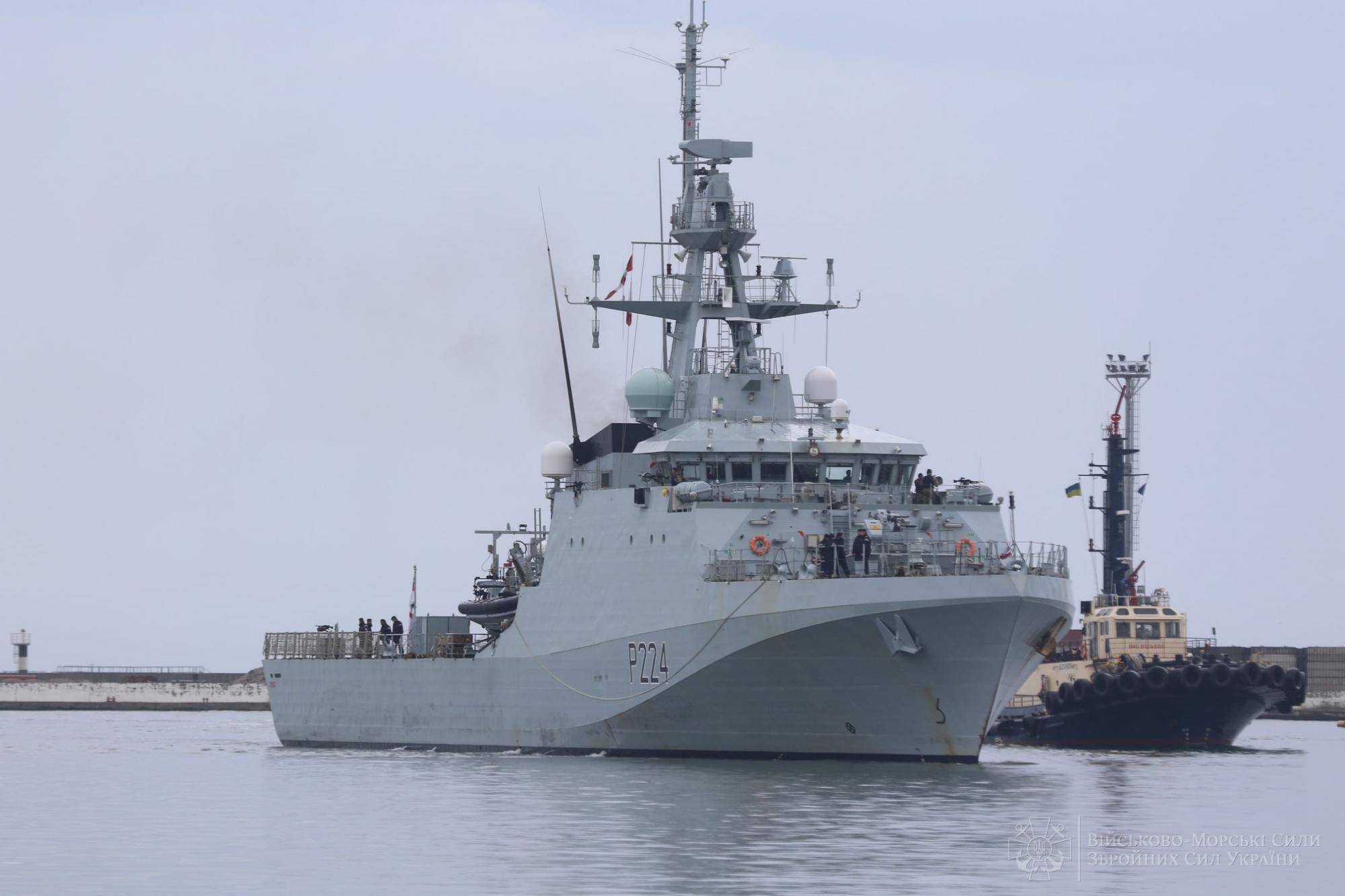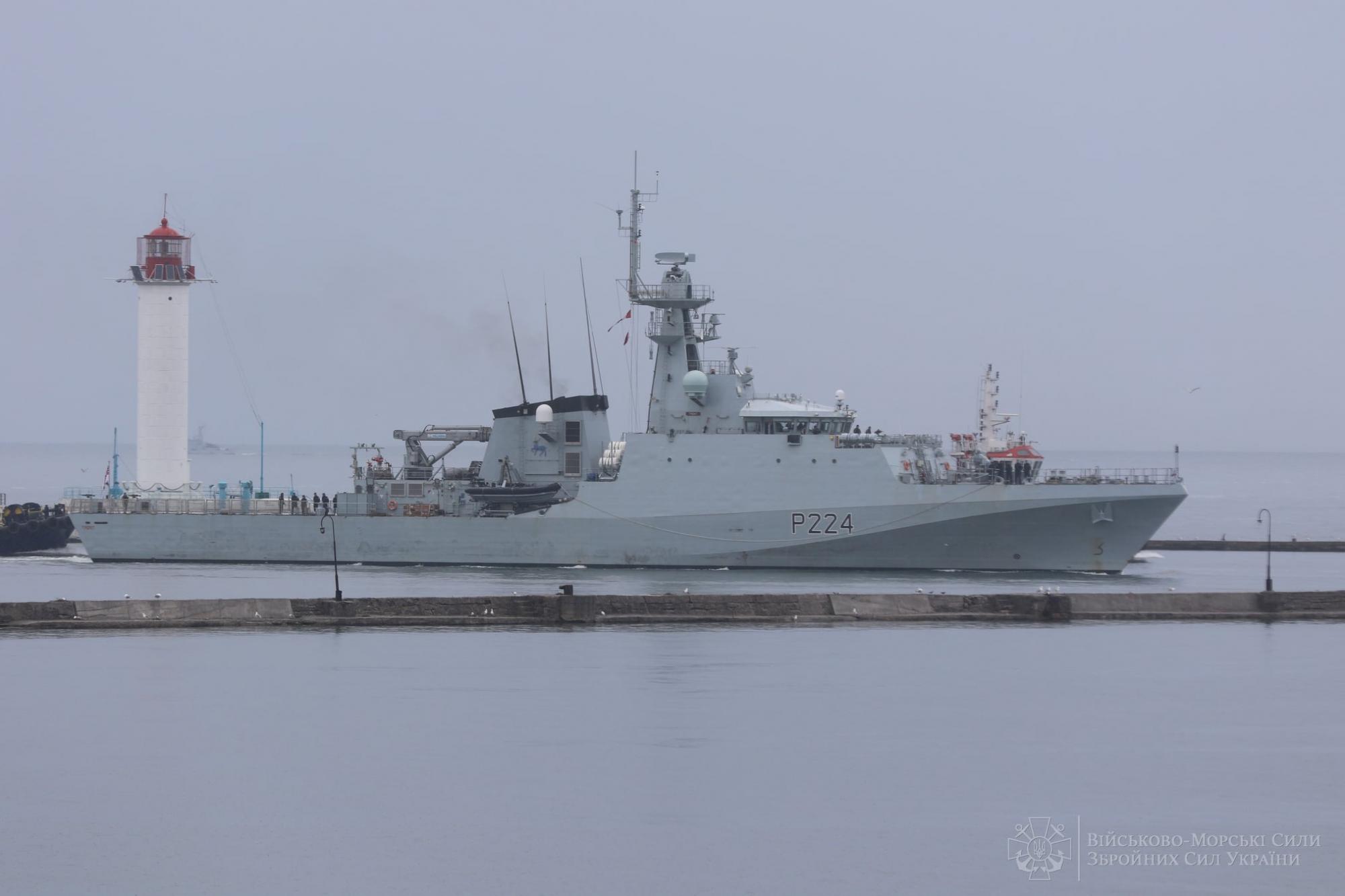 Сегодня к одному из причалов Одесского морского вокзала пришвартовался патрульный корабль прибрежной зоны королевского флота Великобритании OPV «Trent».