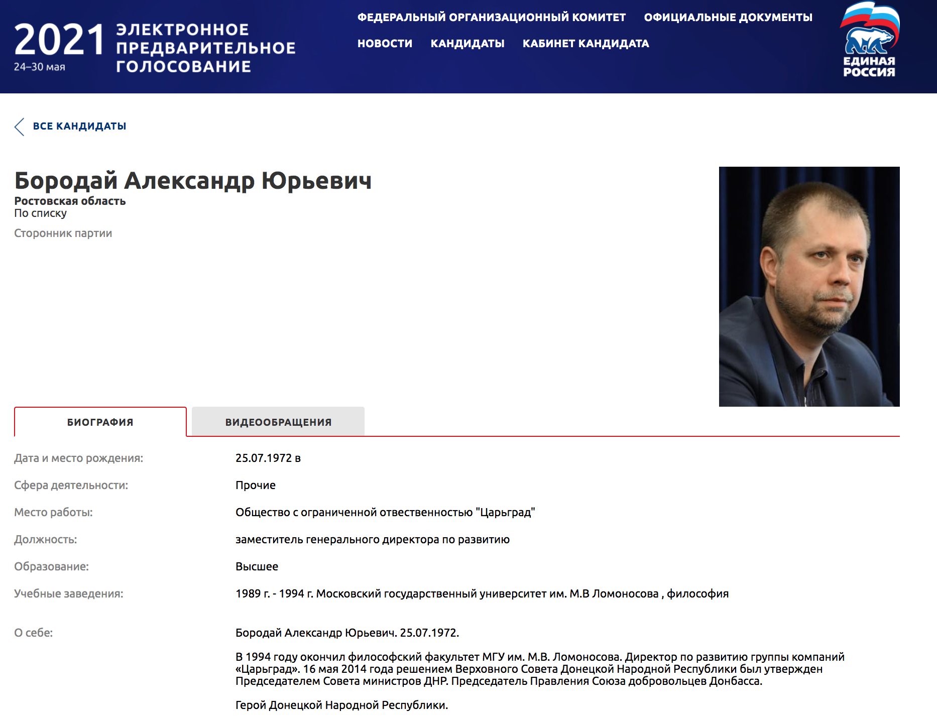 Бывший главарь террористов "ДНР" Александр Бородай стал кандидатом в депутаты в Госдуму РФ от путинской партии "Единая Россия".