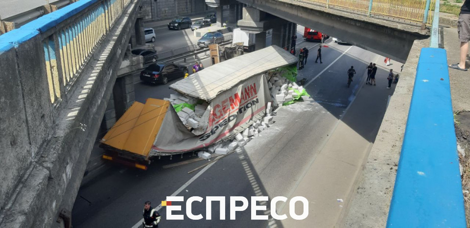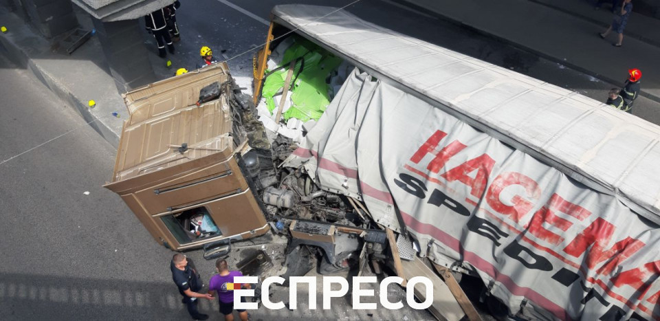 В четверг, 1 июля, в Киеве произошло ДТП с участием грузовика с прицепом и легкового автомобиля