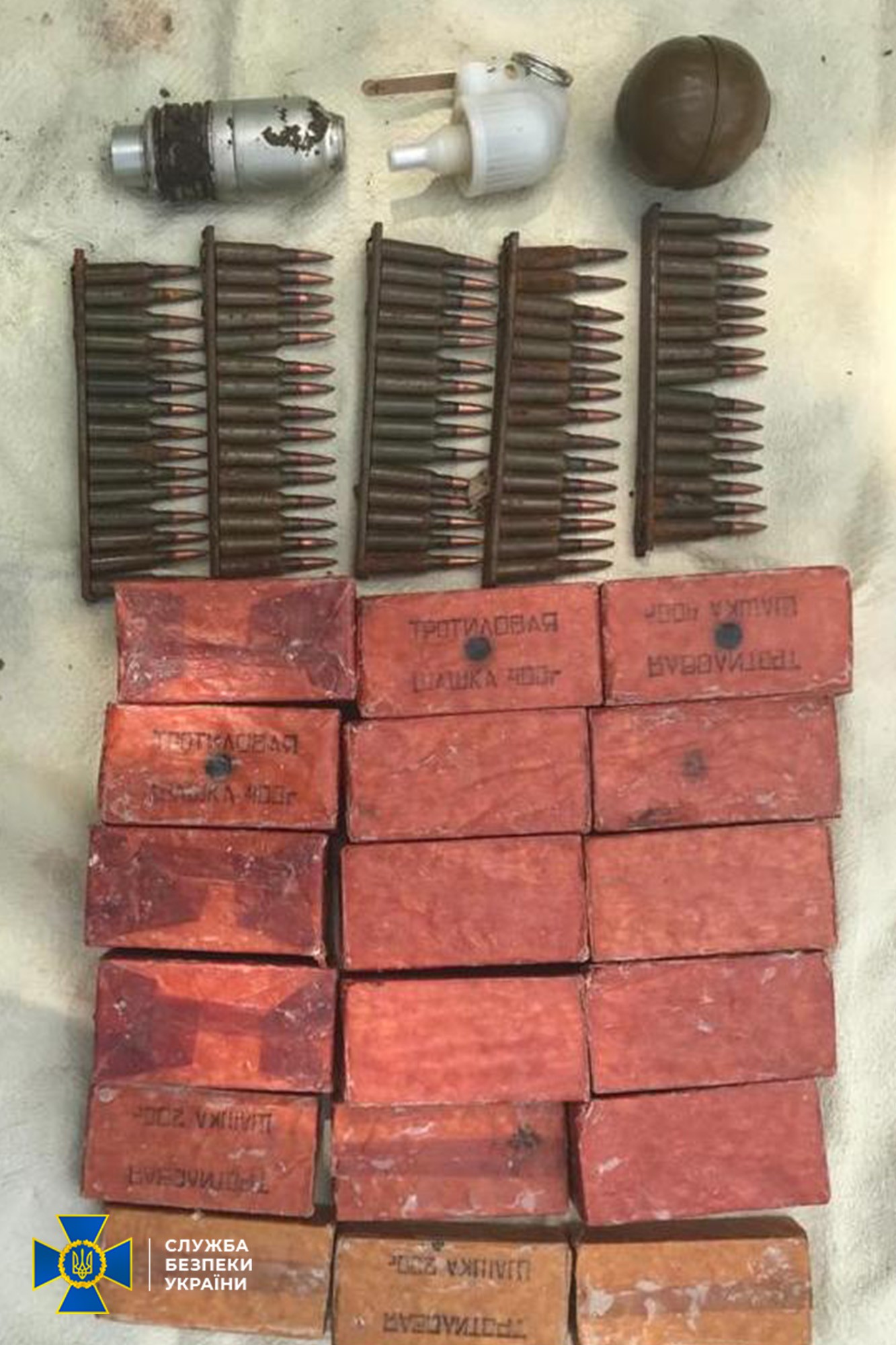 Служба безопасности Украины обнаружила вблизи линии разграничения схрон с военными средствами поражения главарей незаконных вооруженных группировок и тайник с гранатами в центре Северодонецка (Луганская область). Среди прочего, изъято ручную противопехотную гранату производства РФ.