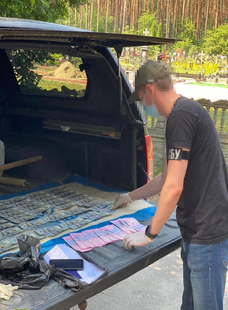 Установлено, что подозреваемый (он уже задержан), выступая в роли помощника должностных лиц коммунального предприятия, занимался организацией похорон. По данным следствия, он получил взятку в сумме 8000 долл США за предоставление услуг по организации похорон, в том числе, решения вопроса в СКП «Спецкомбинат ПКБО» относительно получения мест для захоронения на кладбищах.
