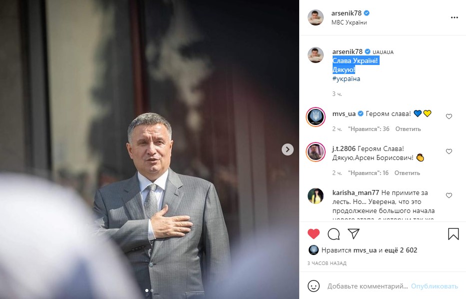 " Слава Україні! Дякую!", – написал уже экс-глава МВД.