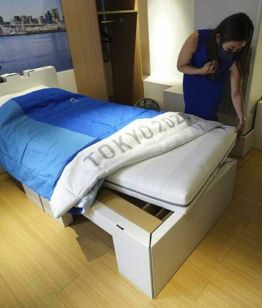 Для спортсменов и представителей делегаций потребуется порядка 18 000 спальных мест. По словам менеджера олимпийской деревни в Токио Такэси Китадзимы, такие кровати рассчитаны на вес только одного человека. На них не рекомендуется прыгать и «праздновать». Спортсмены сразу же назвали их «антисекс-кроватями».