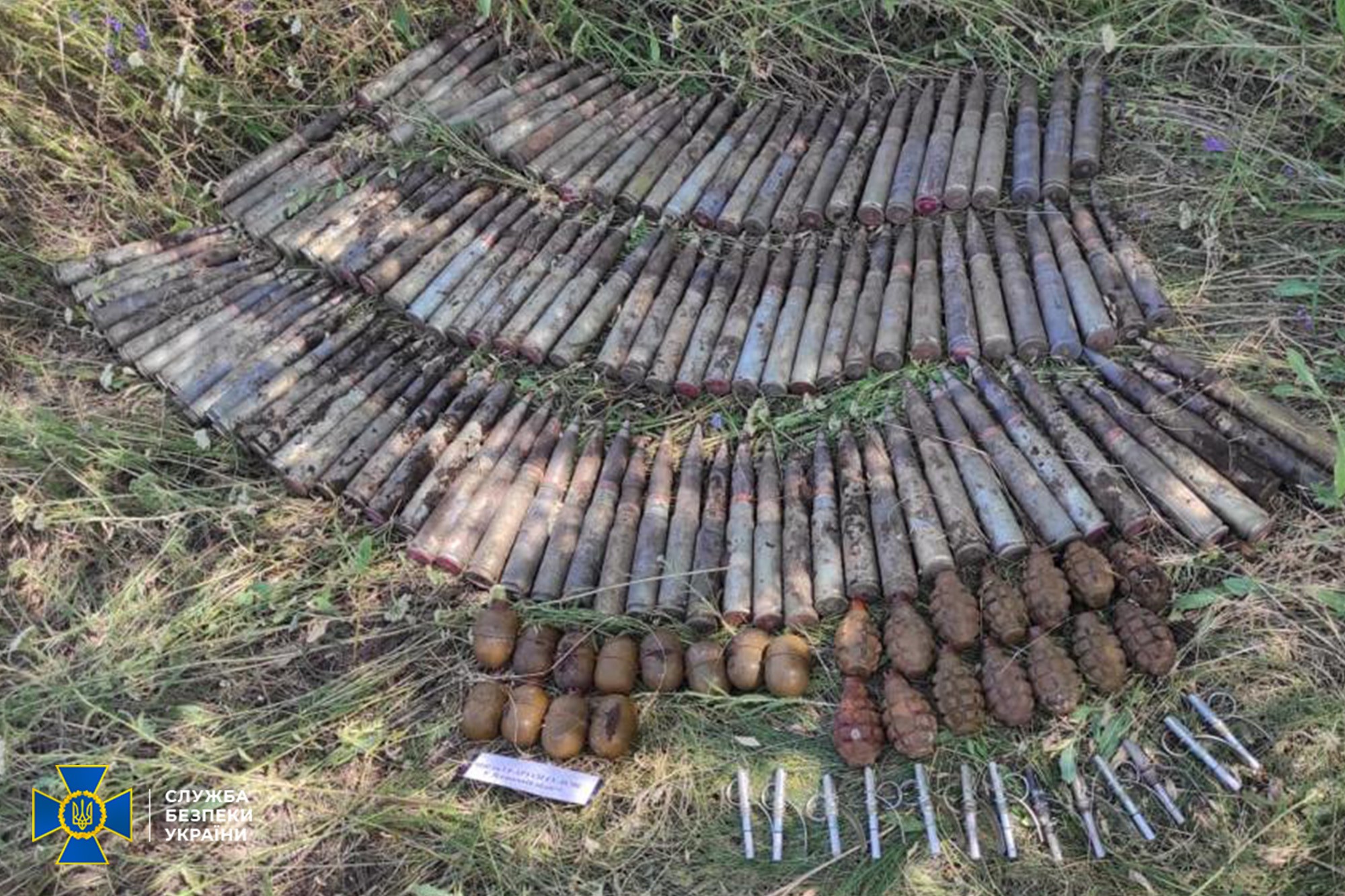 После получения оперативной информации сотрудники СБУ установили местонахождение тайника. Во время его осмотра правоохранители обнаружили 116 артиллерийских снарядов; 26 ручных гранат Ф-1 и РГД-5, 13 запалов УЗРГМ-2.