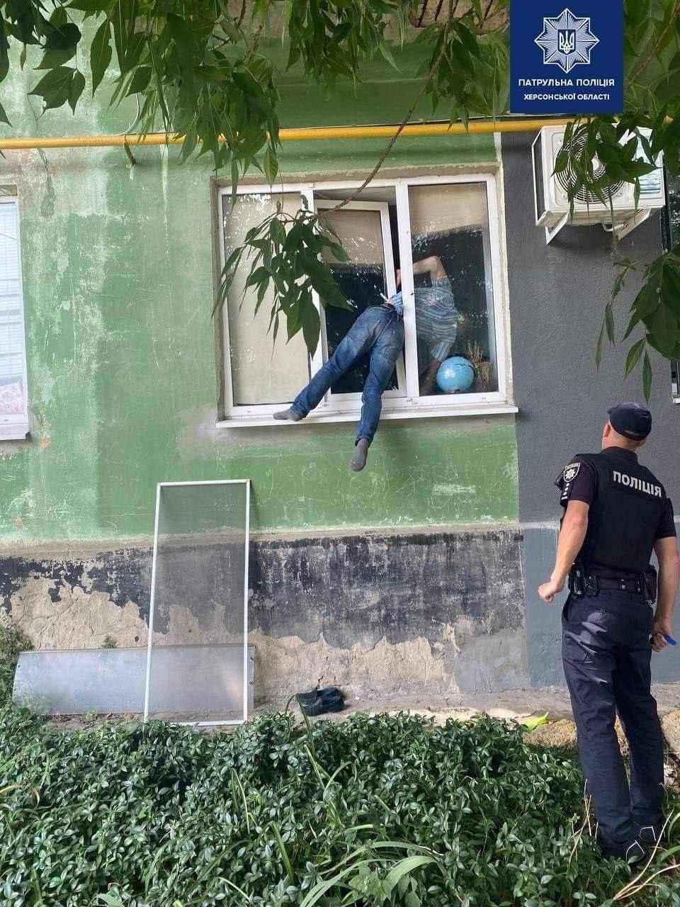 В Херсоне полиция получили вызов от женщины, которая сообщила, что бывший сожитель отказывается покинуть ее квартиру. Ранее она его выгнала из дома, но он решил вернуться и для этого воспользовался окном, где и застрял.