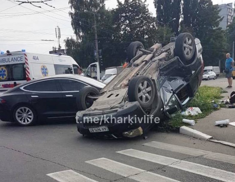Очевидцы пишут, что от сильного удара одна из машин сделала кульбит и приземлилась на крышу.