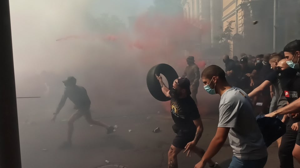 «Участники акций протеста на Банковой не захотели пройти проверку на содержание опасных предметов перед допуском к ОПУ и спровоцировали столкновения с силами правопорядка», - сообщил Артем Шевченко.