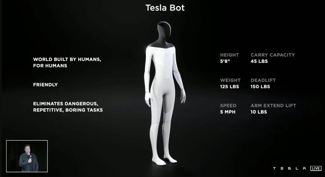 Tesla провела мероприятие AI Day, посвященное искусственному интеллекту. На нём выступил генеральный директор Илон Маск и объявил, что компания разрабатывает антропоморфного робота-гуманоида.