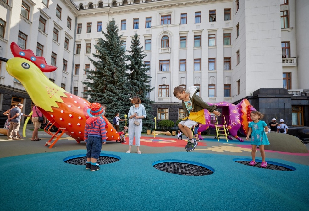 В Киеве возле здания Офиса президента открылось для посетителей игровое арт-пространство, объекты которого созданы по мотивам работ известной украинской художницы Марии Примаченко.