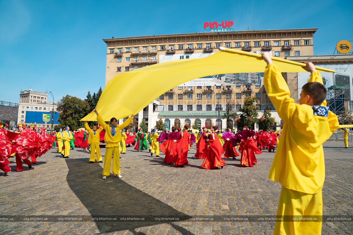 В театрализованной хореографической постановке «Расцветай, Украина!» приняли участие более 350 участников харьковских коллективов.