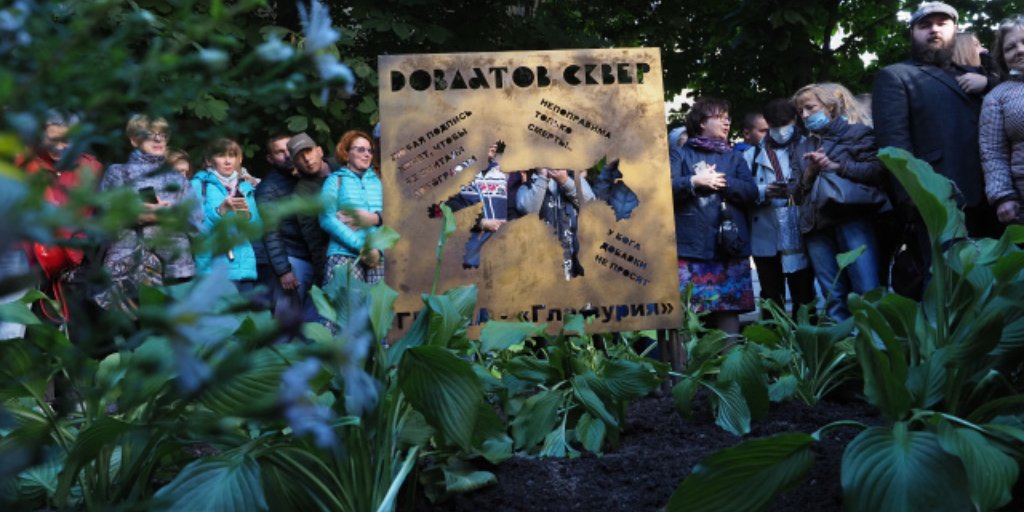 Стальную доску с вырезанным абрисом собаки работы Вячеслава Бухаева торжественно открыли в сквере Довлатова на Загородном проспекте, 1. Пока, подчеркивали организаторы, памятник временный — он не прошел все этапы согласования, сообщают местные СМИ.