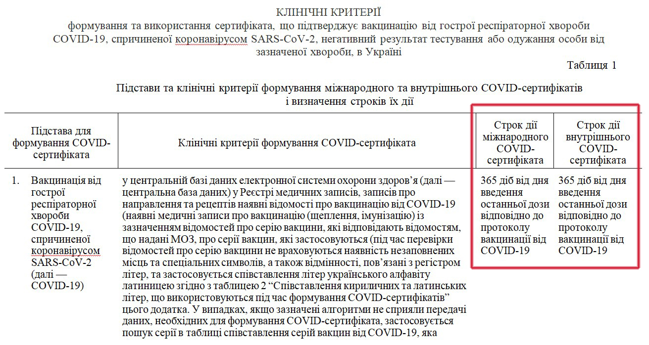 "Срок действия международного/внутреннего Covid-сертификата – 365 суток со дня введения последней дозы соответственно с протоколом вакцинации от Covid-19", - говорится в дополнении к постановлению правительства.