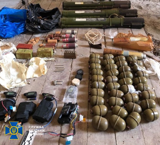Сотрудники СБУ обнаружили почти 2 кг тротила, 400 г пластида, 10 средств для инициирования взрыва, 3 реактивных противотанковых гранаты, 4 выстрела к гранатометам ВОГ-25, 39 гранат РГД-5 и Ф-1. Все это передали на экспертизу.