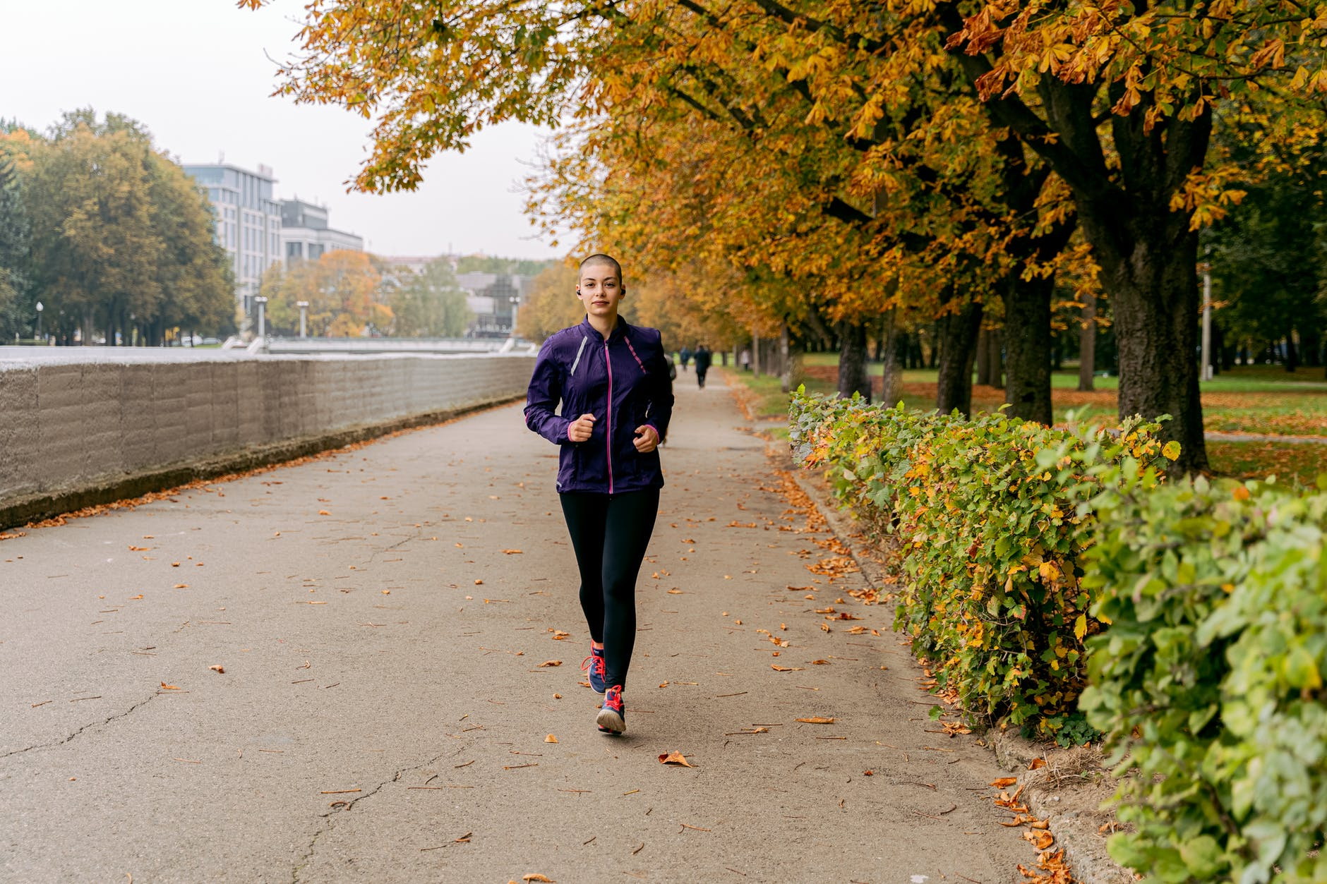 Для бархатного сезона под кофтой достаточно простой футболки или лонгслива. Когда на улице +15 °C, можно бегать в леггинсах или шортах. При нулевой температуре нужны тайтсы или штаны на флисе.
