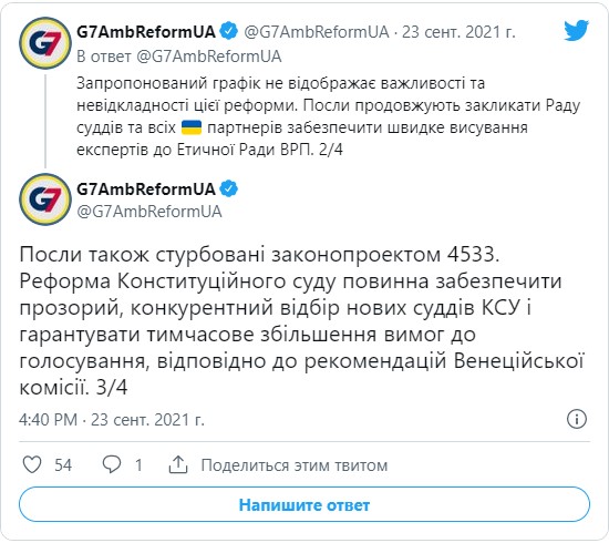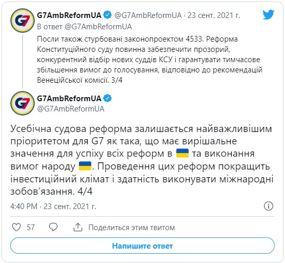 — G7AmbReformUA (@G7AmbReformUA) September 23, 2021