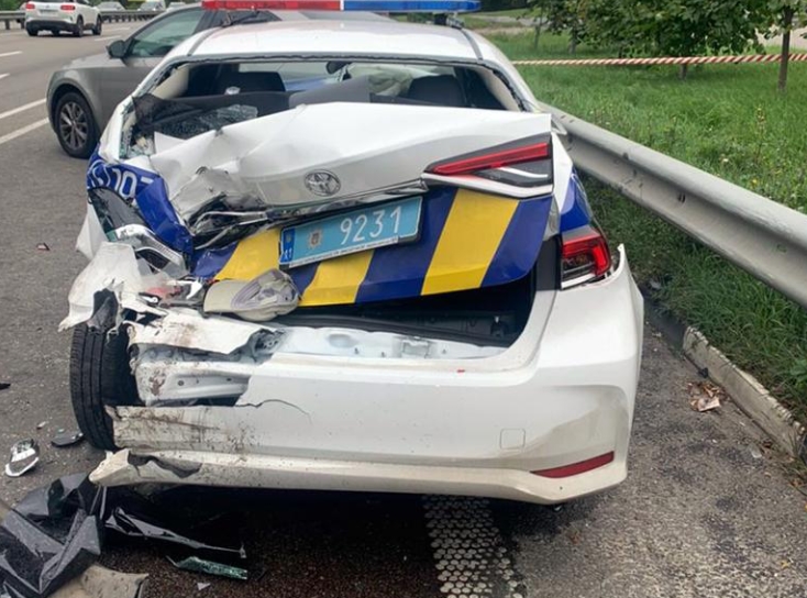 На Брест-Литовском шоссе в Святошинском районе столицы водитель микроавтобуса, находясь в нетрезвом состоянии, совершил наезд на полицейский автомобиль, в результате чего четыре человека получили травмы различной степени тяжести.