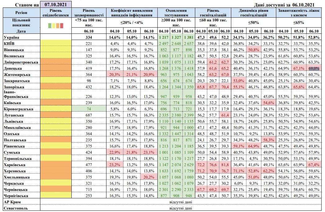 В Украине 12 областей соответствуют "оранжевой" зоне по противоэпидемическим критериям борьбы с коронавирусом. В основном в регионах не соответствуют норме показатели госпитализаций.