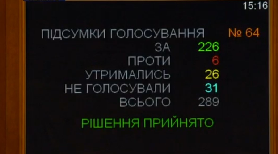 Для закрытия пленарного заседания народным депутатам хватило ровно 226 голосов (необходимый минимум).