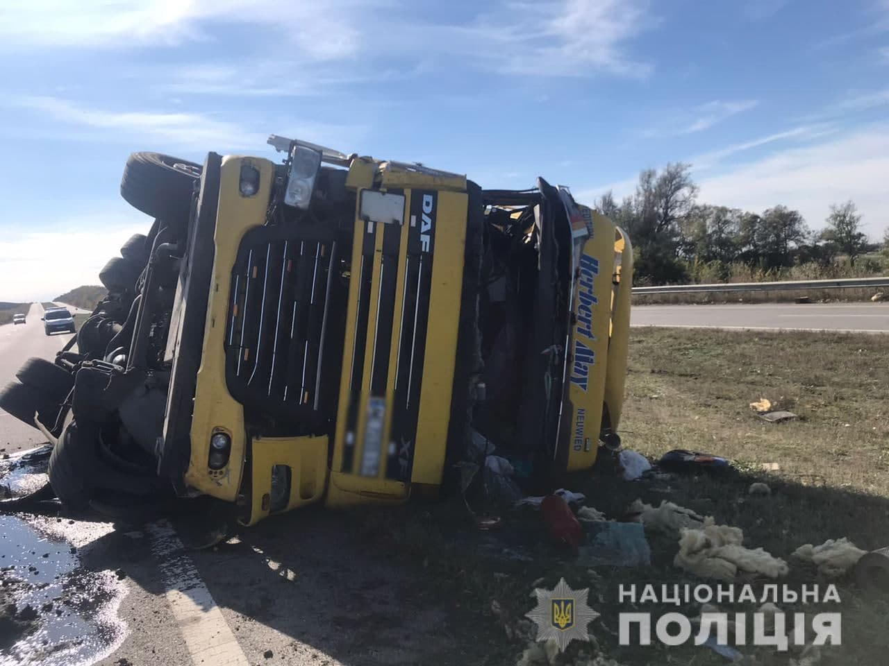 9 октября на 105 км дороги "Харьков-Перещепино-Днепропетровск" перевернулся грузовик.