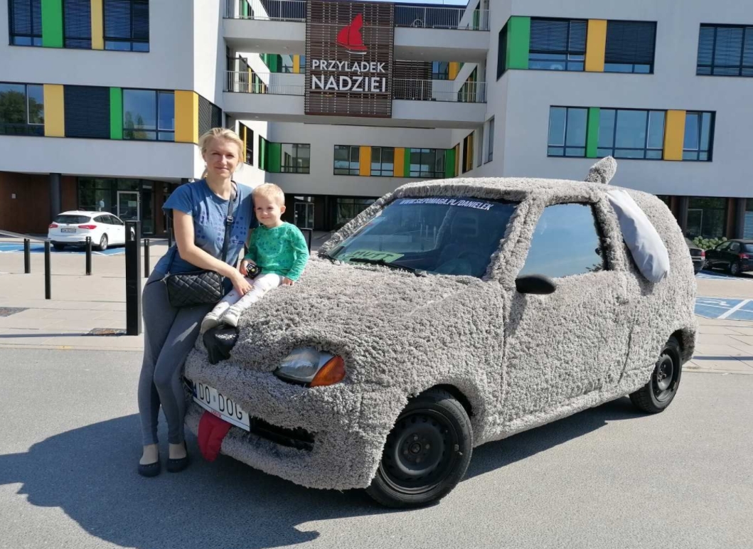 Житель польского города Вроцлав, украинец Сергей Бойко, украсил автомобиль Fiat Seicento 1997 года выпуска мехом, чтобы он напоминал пса. Мужчина выставил его на продажу и фотографирует с ним желающих, чтобы оплатить лечение тяжелобольного двухлетнего сына Даниэля.