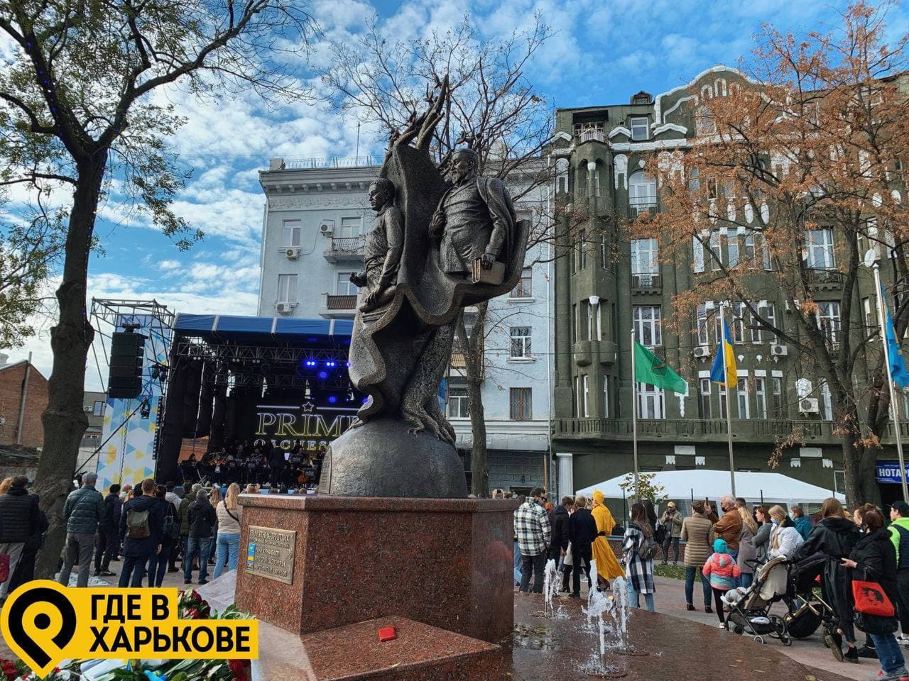 Сквер Мыслителей, что символизирует дружеские отношения между Украиной, Казахстаном и Азербайджаном открыли сегодня днем, 23 октября, на улице Полтавский Шлях, 24а, возле Театра юного зрителя.