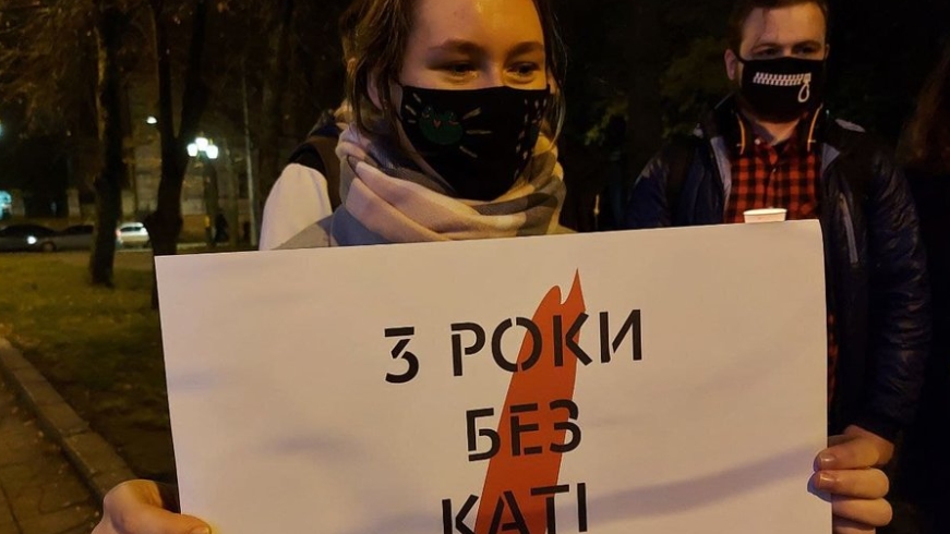 "Три года назад была жестоко убита Екатерина Гандзюк. Мы хотим напомнить, что в любой точке Украины все помнят, что произошло", - рассказала участница акции Юлия Напольская.
