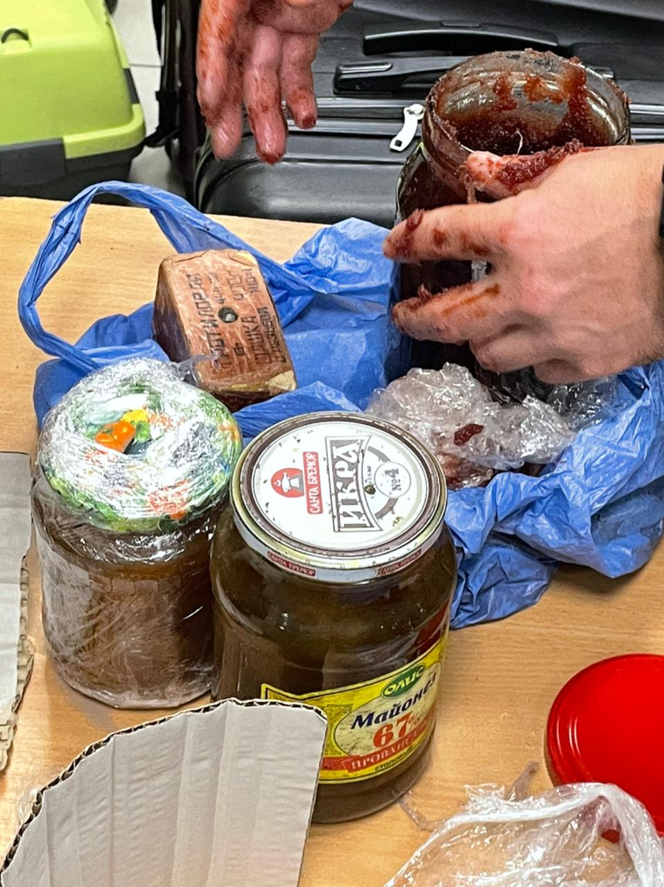 "На днях в контрольный пункт въезда-выезда "Каланчак" из временно оккупированного Крыма прибыл автомобиль Рено Трафик. Водитель и три пассажира автомобиля – граждане Украины. Во время осмотра транспортного средства и находившихся в нем вещей пограничники совместно с сотрудниками ГУ СБУ в АР Крым и инспектором таможни обнаружили банку варенья, в которой находилась тротиловая шашка весом 400 граммов. Кроме того, у одного из пассажиров пограничники обнаружили 2 ед. холодного оружия", - сообщает пресс-служба Госпогранслужбы.