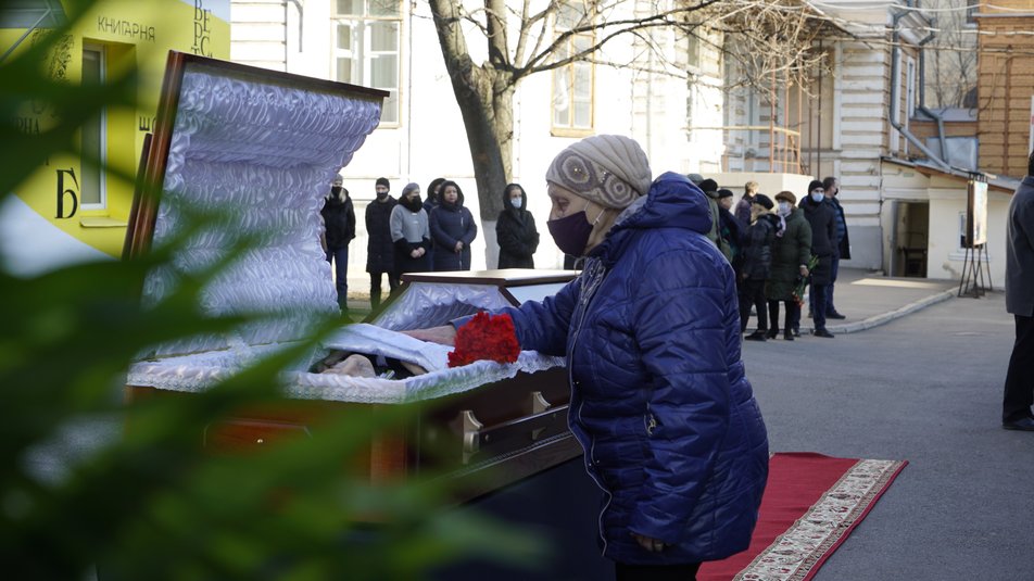 В 12.00 во дворе Украинской инженерно-педагогической академии в Харькове началась церемония прощания с узником концлагерей, ученым и общественным деятелем Игорем Малицким.