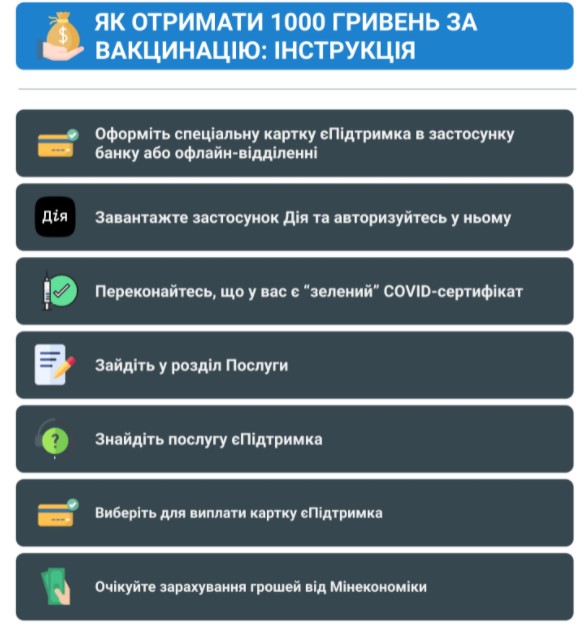 Поощрительную тысячу будут выдавать тем украинцам, которые получили прививку от коронавируса двумя дозами вакцины.