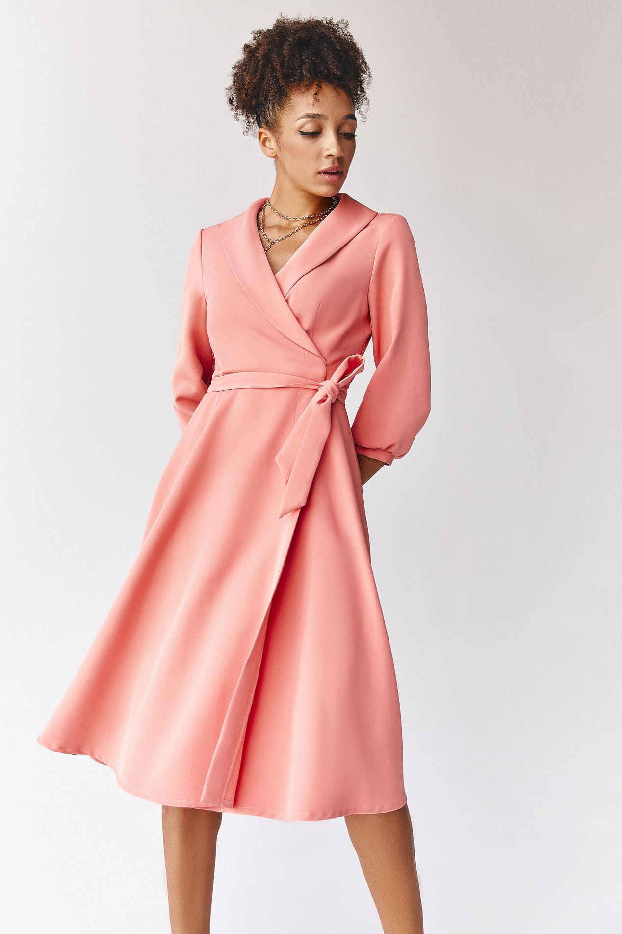 Женственный силуэт и правильные пропорции можно добиться при помощи классического платья футляр по фигуре. Лучшая длина для девушек с небольшим ростом – миди, но при условии, что вы будете сочетать ее с обувью на каблуке. Не отказывайтесь и от макси, правда сегодня в тренде дополнять ее обувью на высокой танкетке (никакой шпильки или другого каблука).
