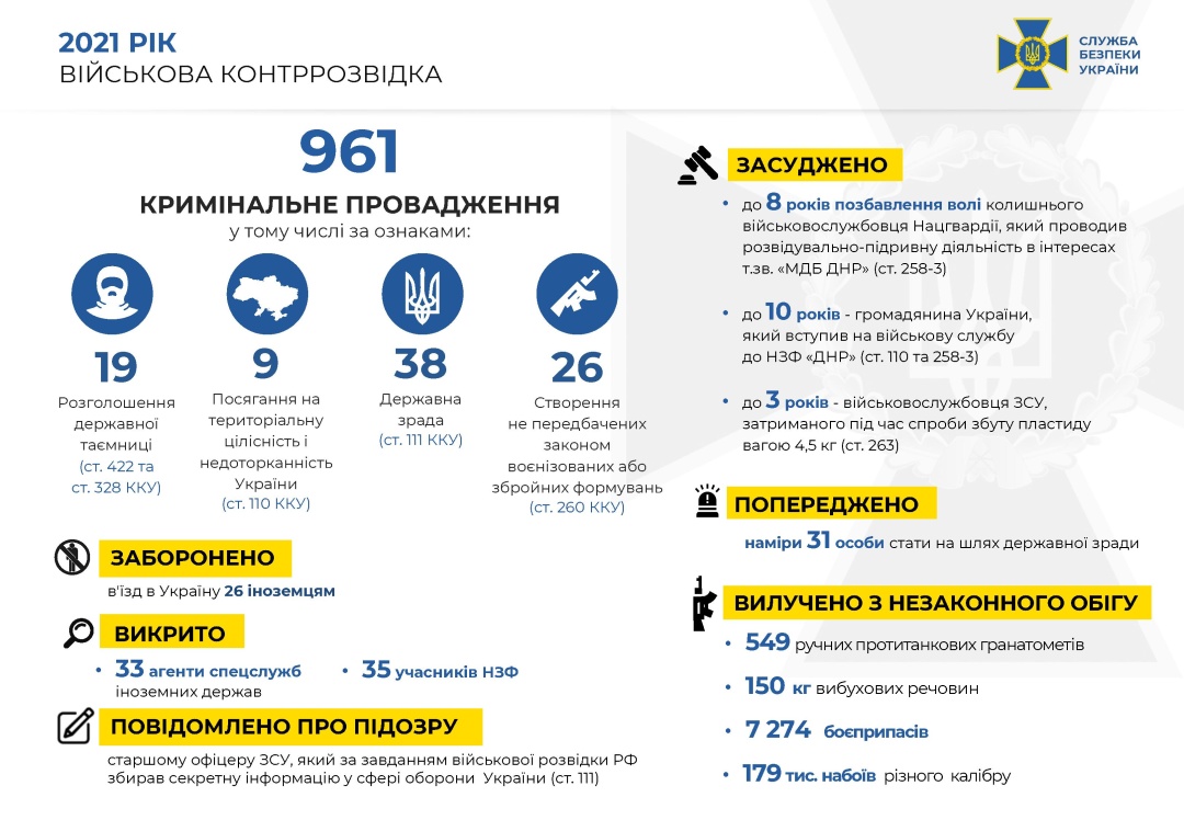 За прошлый год более 30 вражеских агентов уличены в скрытом сборе разведданных, в том числе относительно организации военного управления в Вооруженных Силах Украины.