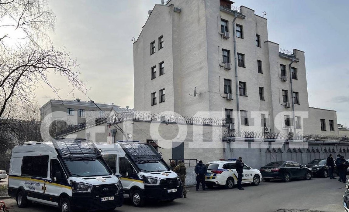 Над посольством РФ в Киеве спущен российский флаг. Ранее МИД РФ сообщил об эвакуации дипломатов и их семей из Украины.