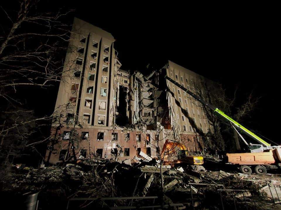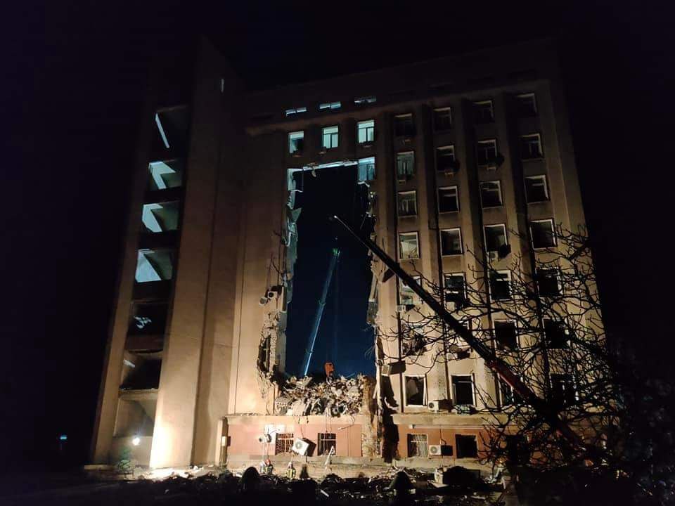 В результате обстрела здания Николаевской областной государственной администрации погибли 16 человек. На месте продолжается разбор завалов.