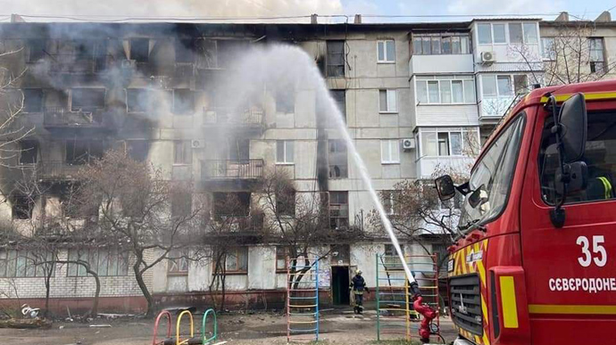 В частности, в Северодонецке горели шесть многоэтажек и магазин, в Рубежном – пять объектов жилого фонда, в Лисичанске – два дома.
