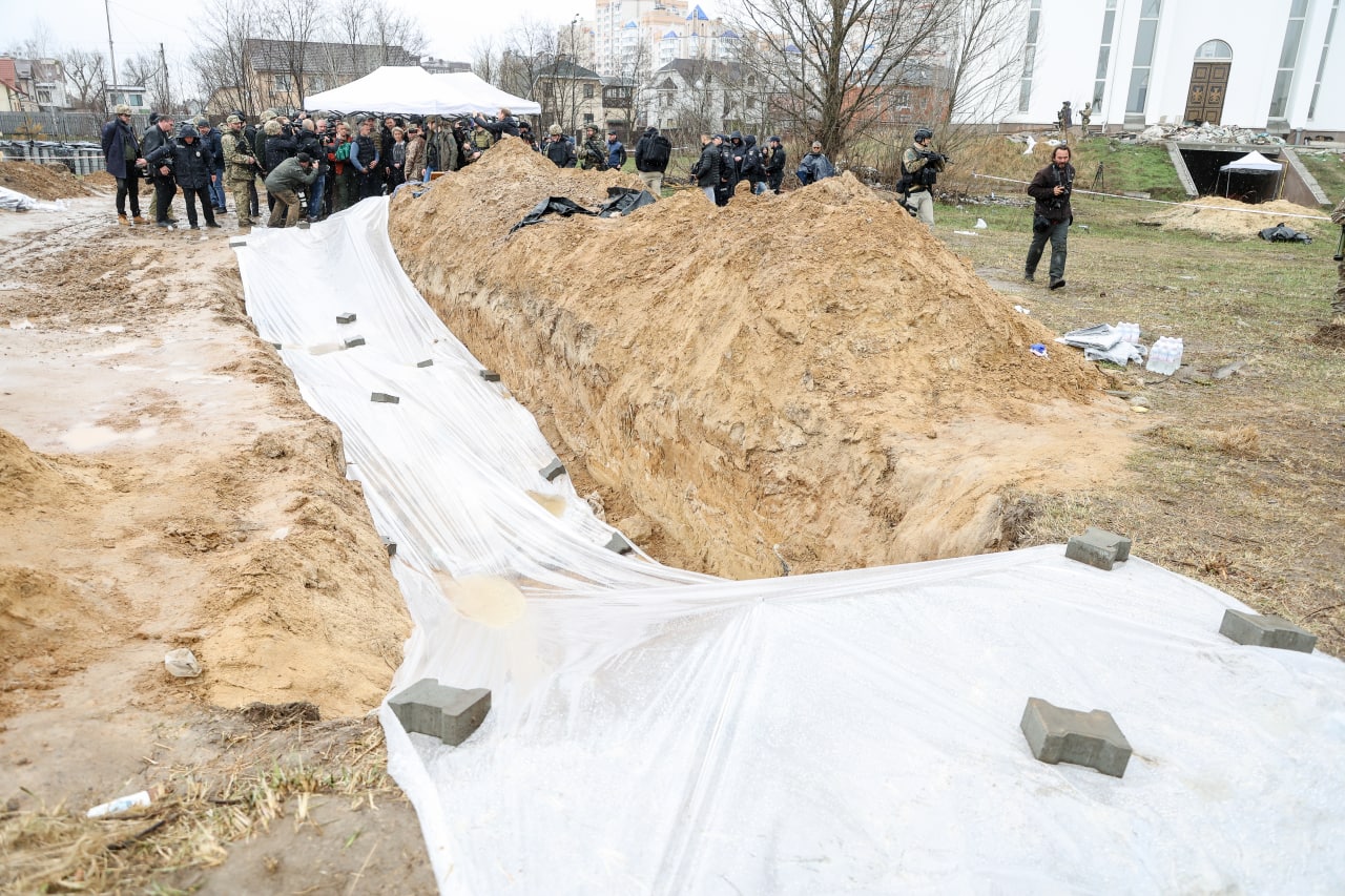 Сегодня, 8 апреля, в Буче начали эксгумацию тел из братской могилы возле церкви Андрея Первозванного и всех святых, чтобы идентифицировать людей и установить обстоятельства их смерти.