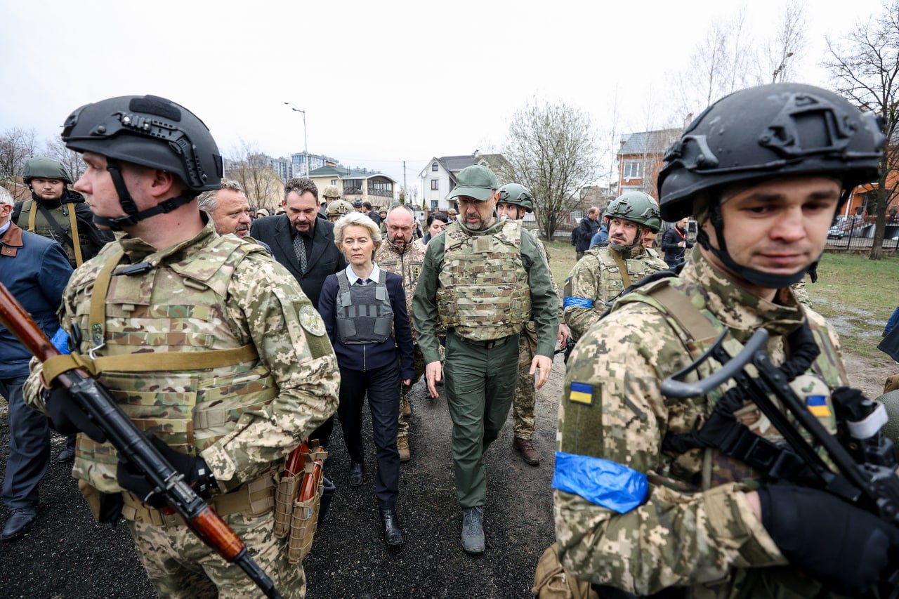 Руководство Евросоюза посетило западный киевский пригород Бучу, который стал символом зверств российских оккупантов в Украине. Фотографии из города-героя показал у себя в Telegram премьер Денис Шмыгаль.