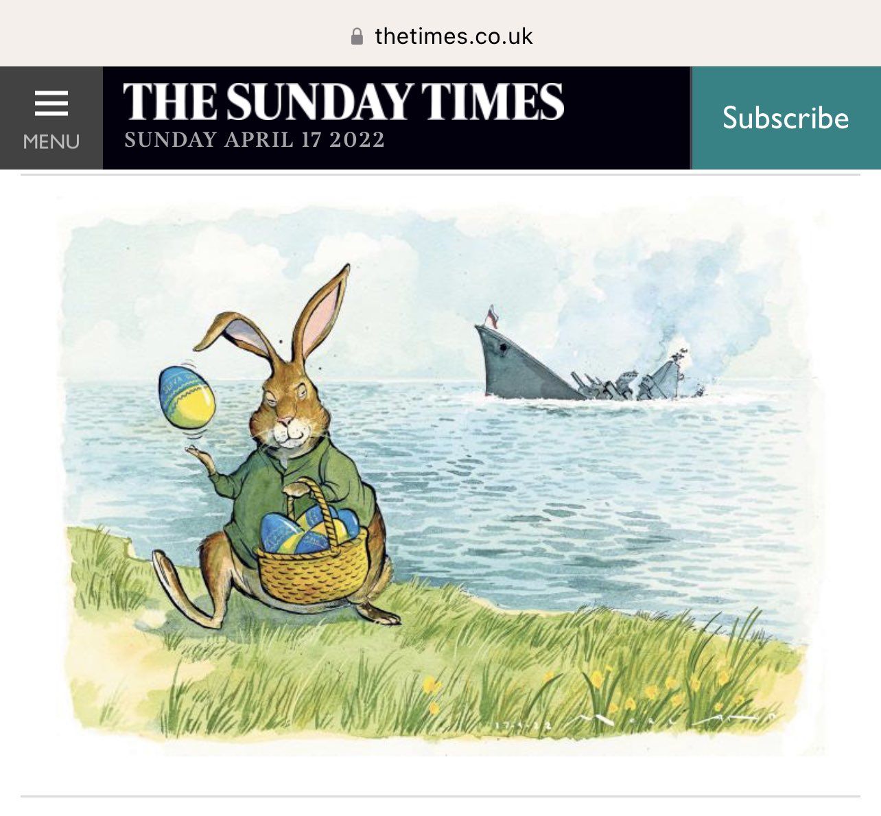 Британское издание Sunday Times разместило на своих страницах пасхальный рисунок с традиционным кроликом, который несет в корзине яйца.