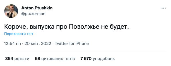 Телеграм-канал связывает запрет на въезд Птушкина в Россию, действующий с 16 апреля, с тем, что он критиковал российское вторжение в Украину.