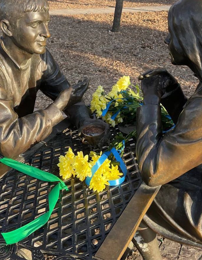 В Омске центральный районный суд оштрафовал на 30 тысяч рублей активиста Николая Родькина по статье о "дискредитации вооруженных сил России". Молодой человек ранее провел в центре города акцию в память о погибших в Украине мирных жителях. Он прошел по главной улице с букетом желтых хризантем, перевязанным голубыми лентами, и возложил цветы к известным скульптурам сантехника "Степаныча", и жены сибирского генерал-губернатора "Любочки". На памятники он повязал зеленые ленты.