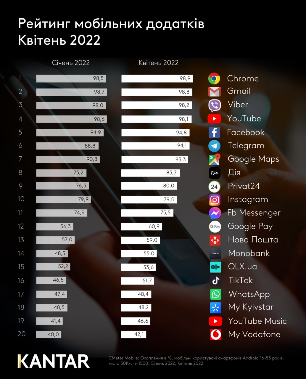 "Сейчас охват "Дії" – почти 84% пользователей смартфонов в Украине. Это на 10% больше, чем было в начале года. Мы уже обогнали в рейтинге Instagram и Facebook Messenger и наблюдаем уверенный рост аудитории", – заявил Федоров.