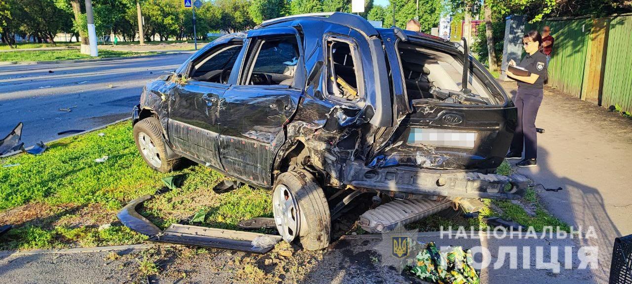 ДТП произошло вчера вечером на Салтовском шоссе - столкновение автомобилей Mitsubishi и Kia Sportage.