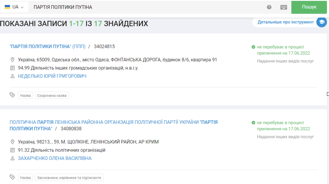 Пока Украина четвертый месяц отбивается от нашествия "русского мира" на ее территории продолжает действовать 17 центров "Партии политики ПУТИНА". Это сочли бы за неудачную шутку, но данные из Единого государственного реестра в системе YouControl свидетельствуют об обратном.
