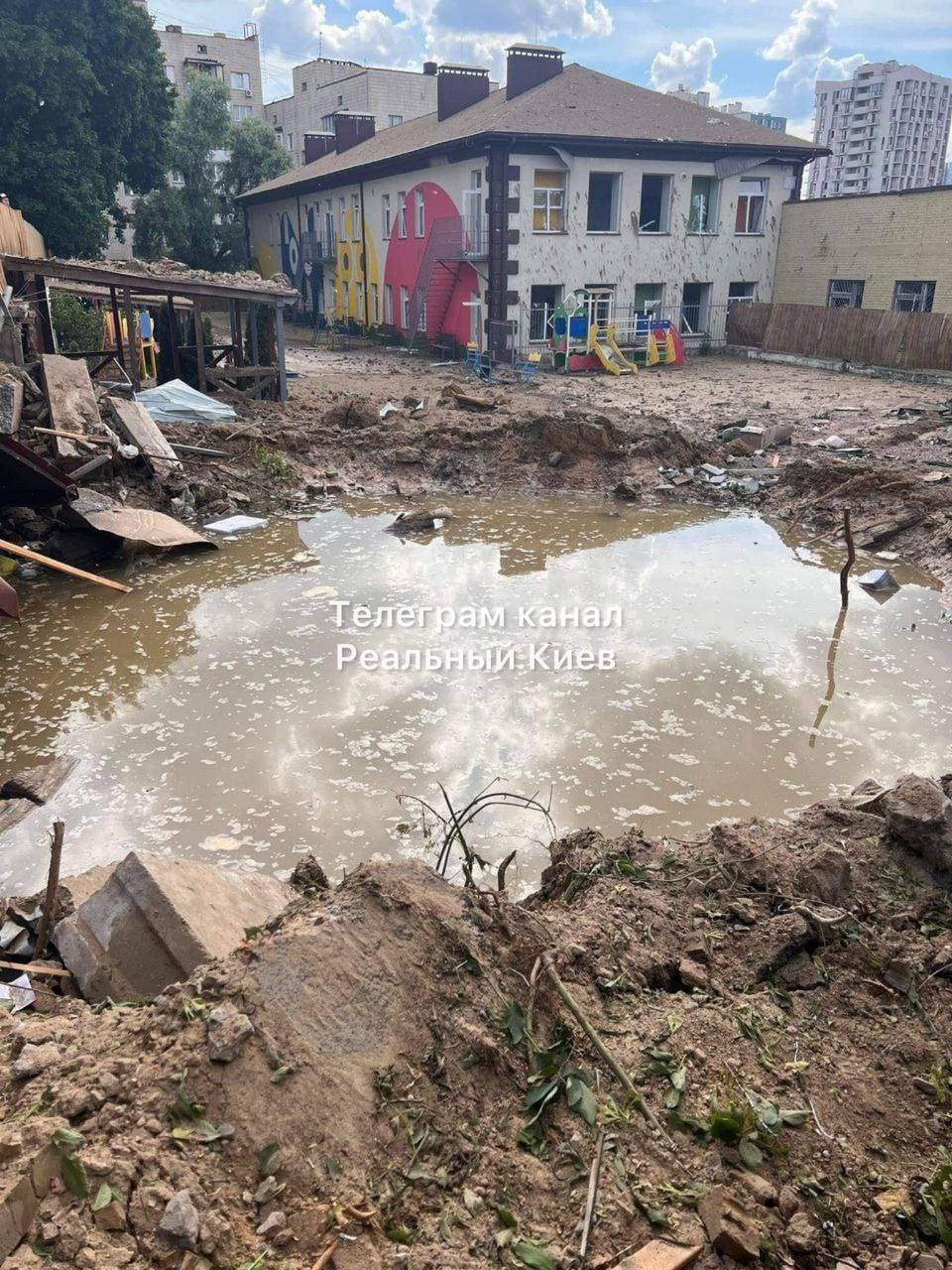 Воронка от попадания вражеской ракеты в площадку возле детского сада в Киеве (фото) 26 июня 2022 11:57 Вражеская российская ракета попала в площадку у детского сада в Киеве. Также распространяется фото, на котором изображена воронка от попадания второй ракеты в площадку возле детского сада в Киеве.