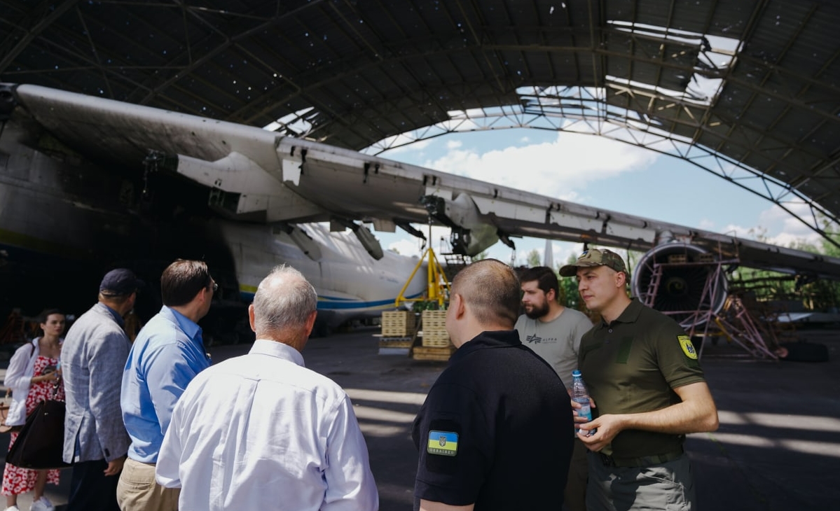 "Также делегация побывала в Международном аэропорту "Антонов", где рашисты разрушили украинский самолет "Мрия". Сенатор Джим Риш был поражен увиденным", - написал Кулеба в телеграмме.