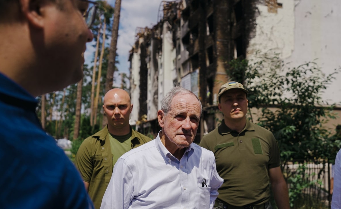 По его словам, сенатор Риш побывал в Гостомеле и в Ирпене, где "своими глазами увидел разрушение населенных пунктов и последствия преступлений российской армии".