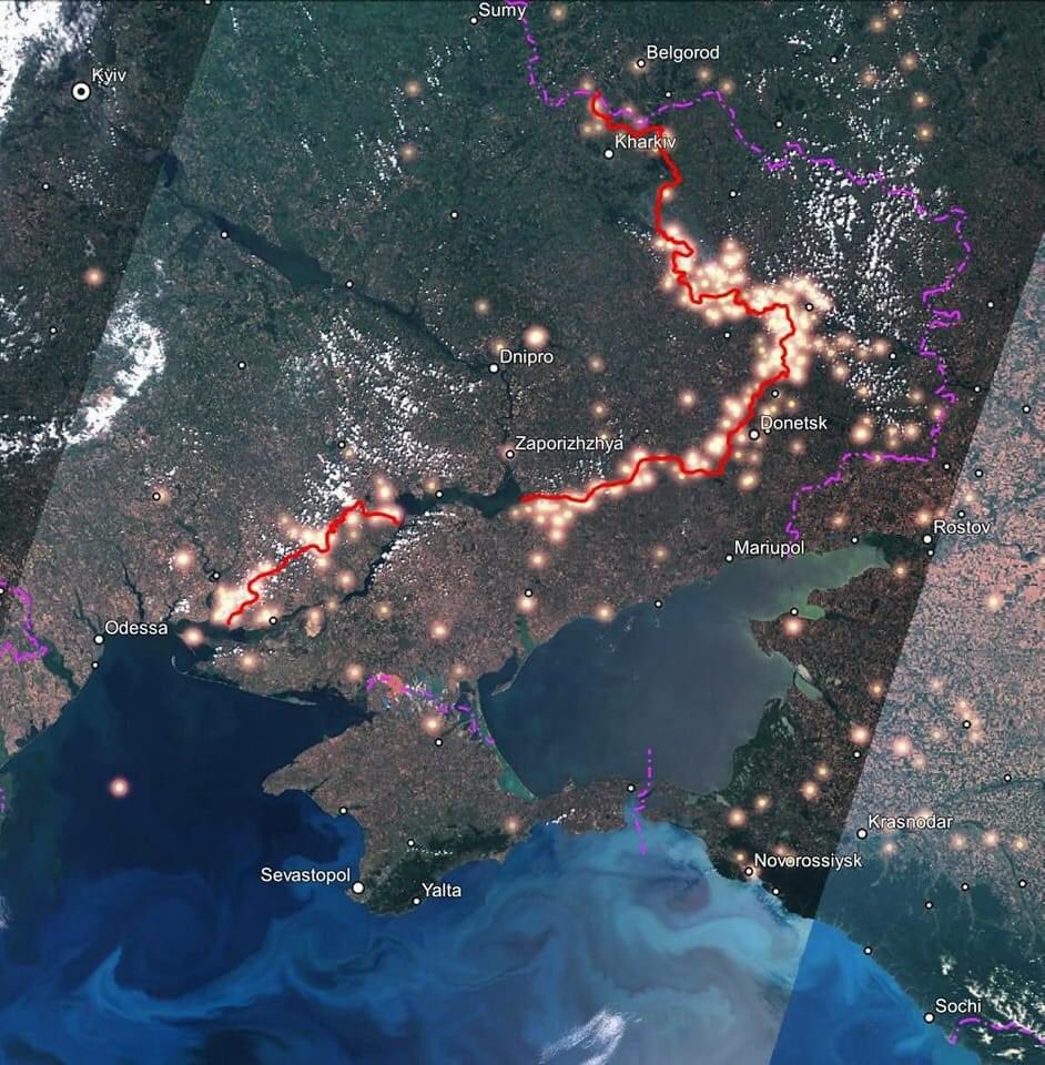 Система Firms NASA, которая занимается мониторингом пожаров, зафиксировала самые горячие точки фронта в Украине.