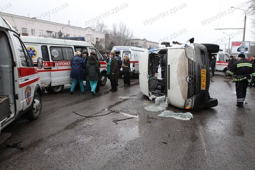 В Запорожье в результате ДТП перевернулось маршрутное такси с пассажирами. Один человек погиб, 12 госпитализированы, сообщает УНИАН.