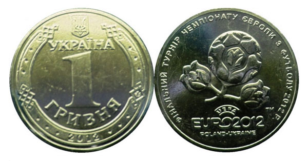 Национальный банк Украины вводит в обращение с 1 марта памятную монету "Финальный турнир чемпионата Европы по футболу 2012 г." номиналом 1 гривна тиражом 5 млн. штук.