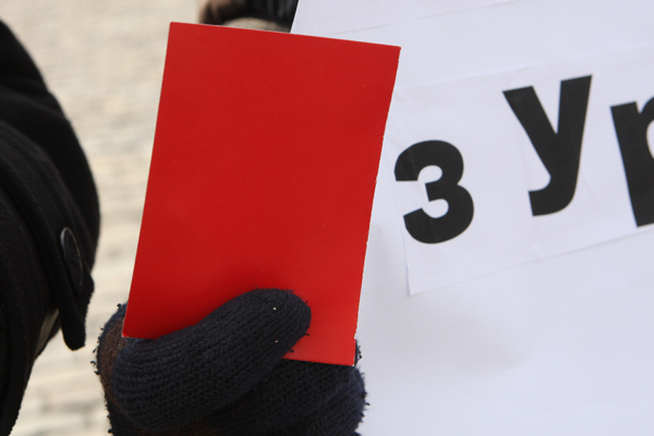 Фото-факт: В Харькове показали «красную карточку» Януковичу